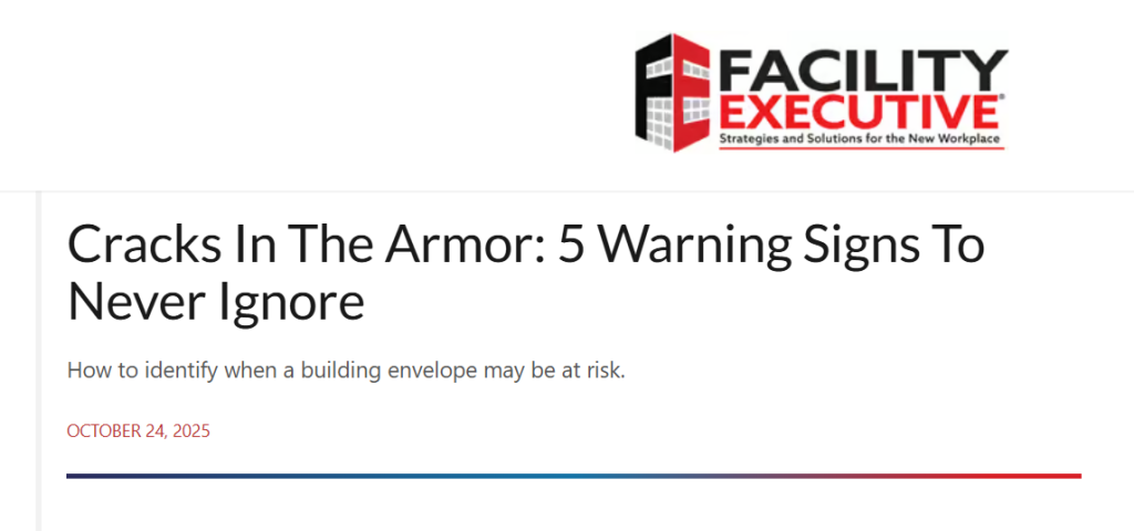 This article published in Facility Executive Magazine provides 5 major warning signs for building managers when monitoring their building envelope. These issues, left unchecked, can...
