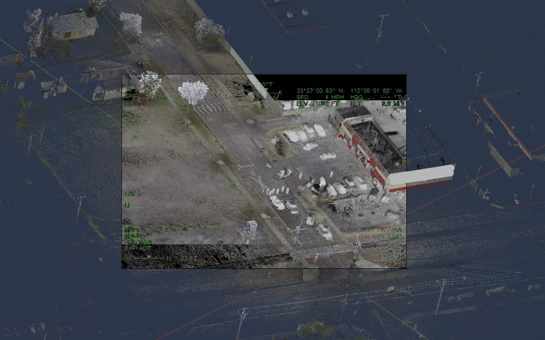 Our experts then use this point cloud model together with scientifically validated photogrammetric software to analyze the evidence depicted in the video and determine the position, orientation, speed, acceleration of vehicles, pedestrians and other objects within the shooting scene.